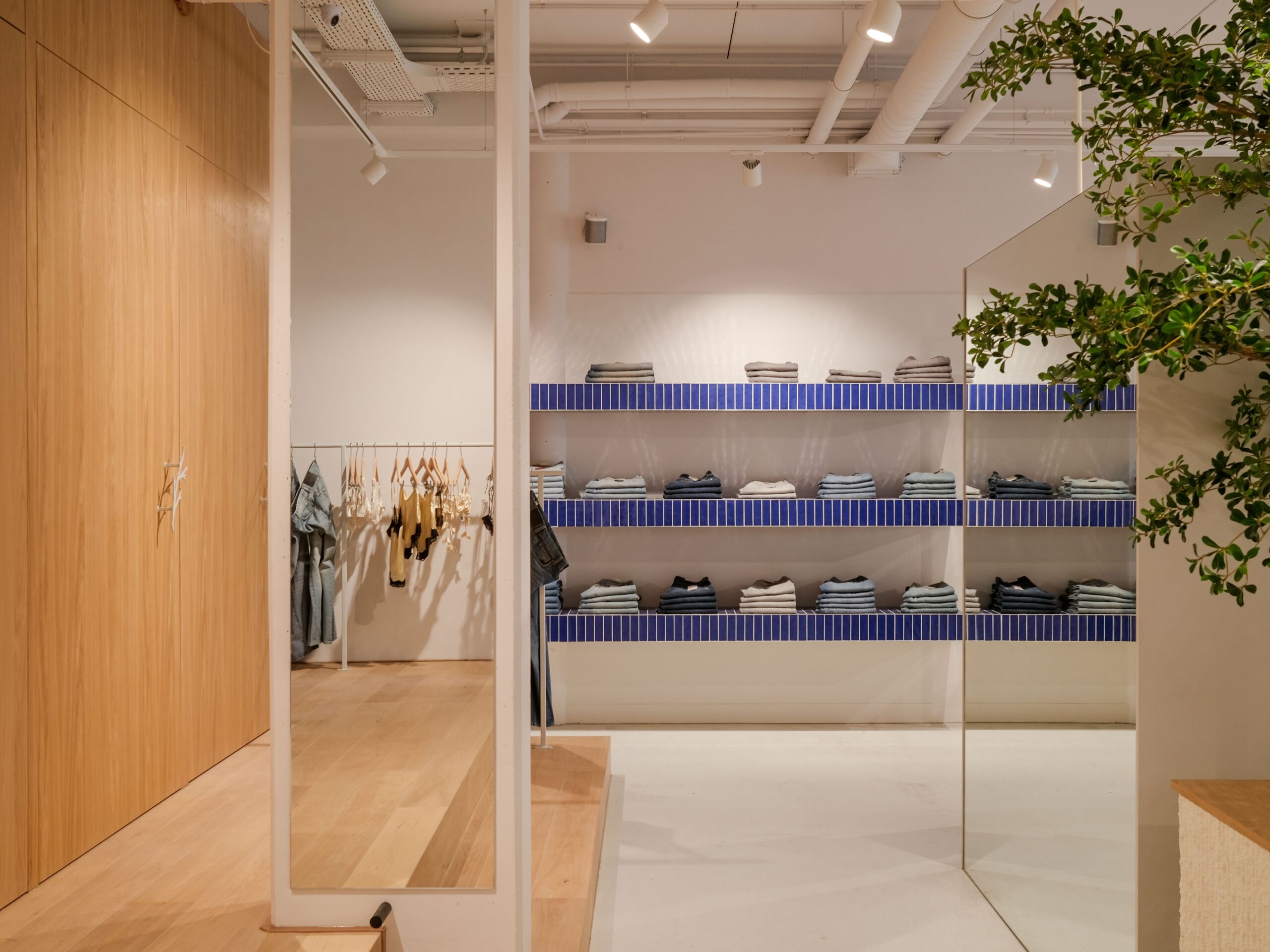 "Minimalisme als concept", met kobalt blauwe accenten wordt het concept waar de winkel om bekend staat versterkt.